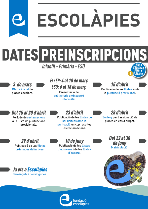 Per a qualsevol consulta sobre el procés d’admissions poden escriure un correu a info@escolapiessabadell.org o trucar al 937 255 348 o al 636 510 581.